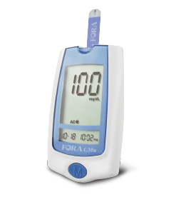 2. Hold the pre-set lancing device firmly against the puncture site. Press the release button to obtain a drop of blood. |