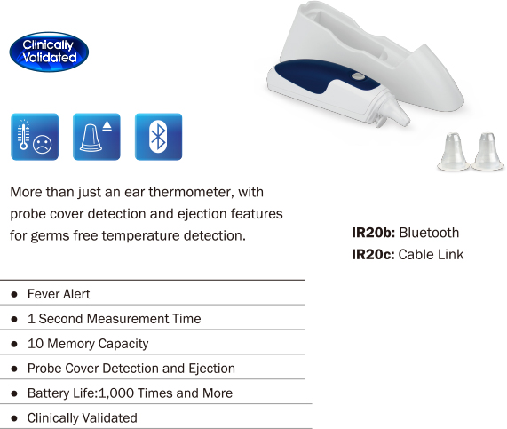 Accuracy | Meet the accuracy requirement specified in ASTM E1965-98 ±0.2°C (±0.4°F) for the range of 36.0°C to 39.0°C (96.8°F to 102.2°F) ±0.3°C (±0.5°F) for the range of <36.0°C (96.8°F) or >39.0°C(102.2°F) |