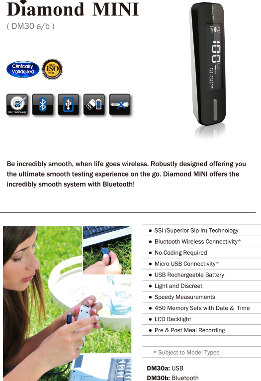 1.Sit back and relax: The Diamond Mini is designed to make glucose testing easier and simpler. No strip coding is required. |