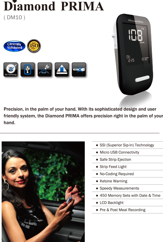 1.Sit back and relax: The Diamond series is designed to make glucose testing easier and simpler. No strip coding is required. |
