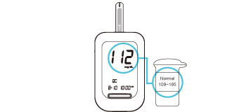 2.Perform a control solution test: Insert the test strip to turn on the meter, and press the button to mark this test as a control solution test with QC displayed. Apply the control solution and compare result with the range printed on the test strip vial. The result displayed on the screen should fall within the range. |